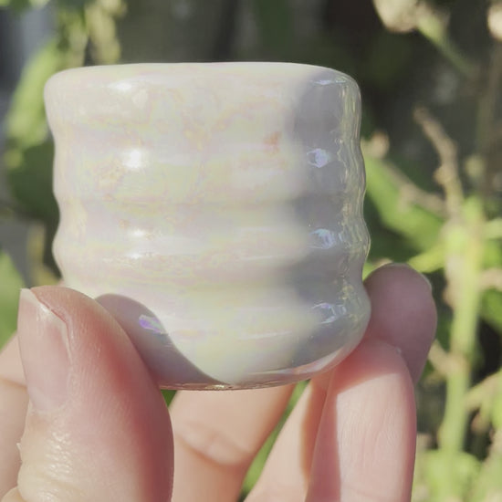 this extra mini pot has gone through three kiln firings, creating a magical opalescent effect!
